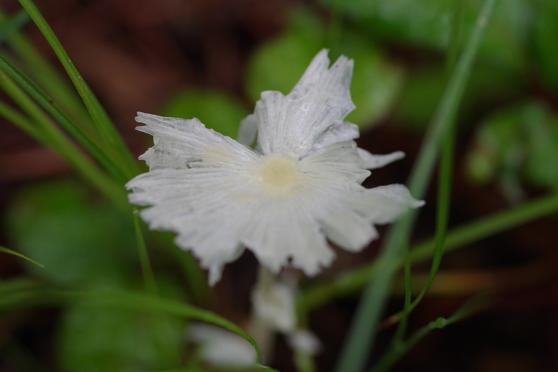 儚くて美しいきのこです。雨に打たれてもう萎れかけでしたが、