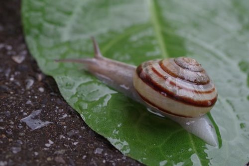雨の日の観察もいいものです。雨だからこそ見えるものがあります。帰り道ではでんでんむしとばったり会うこともできました。車道に出てきていたので葉っぱに乗ってもらい、茂みの中へご案内しました。
