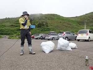 このキャンペーンは毎年7月に八幡平市松尾中学校の全校生徒が、特別保護地区に指定されている八幡平山頂付近に入り込んだセイヨウタンポポやフランスギクを駆除するもので、環境省の他、岩手北部森林管理署、岩手県、八幡平自然散策ガイドの会などが協力し、当日は約100名の参加者がありました。