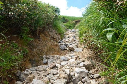 丸森尾根の登山道の荒廃箇所です。一歩足を踏み出す度にボロボロと崩れていきます。