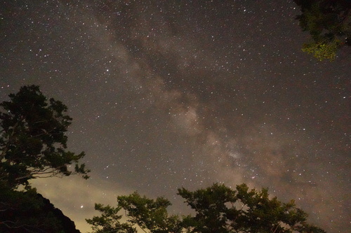 この日の夜の空です。大鳥小屋からは天の川が綺麗に見え、流れ星も絶え間なく流れていました。星を眺めるために訪れるのも良いのではないでしょうか。