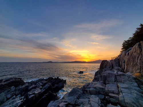 広田崎は半島最南端ということで太平洋沿岸では貴重な夕日のビュースポットです。海に沈む夕日はどうやっても見ることはできませんが、空と海が近づき茜色に染まる時間は一瞬で尊いのです。