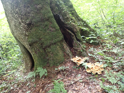 夏の終わりから秋の初めにかけて姿を現すトンビマイタケに出会いました。「マイタケ」という名はついていますが、大きくなると堅くなって食用には適さないようです。あちらこちらに少しずつ、キノコが姿を見せ始めました。