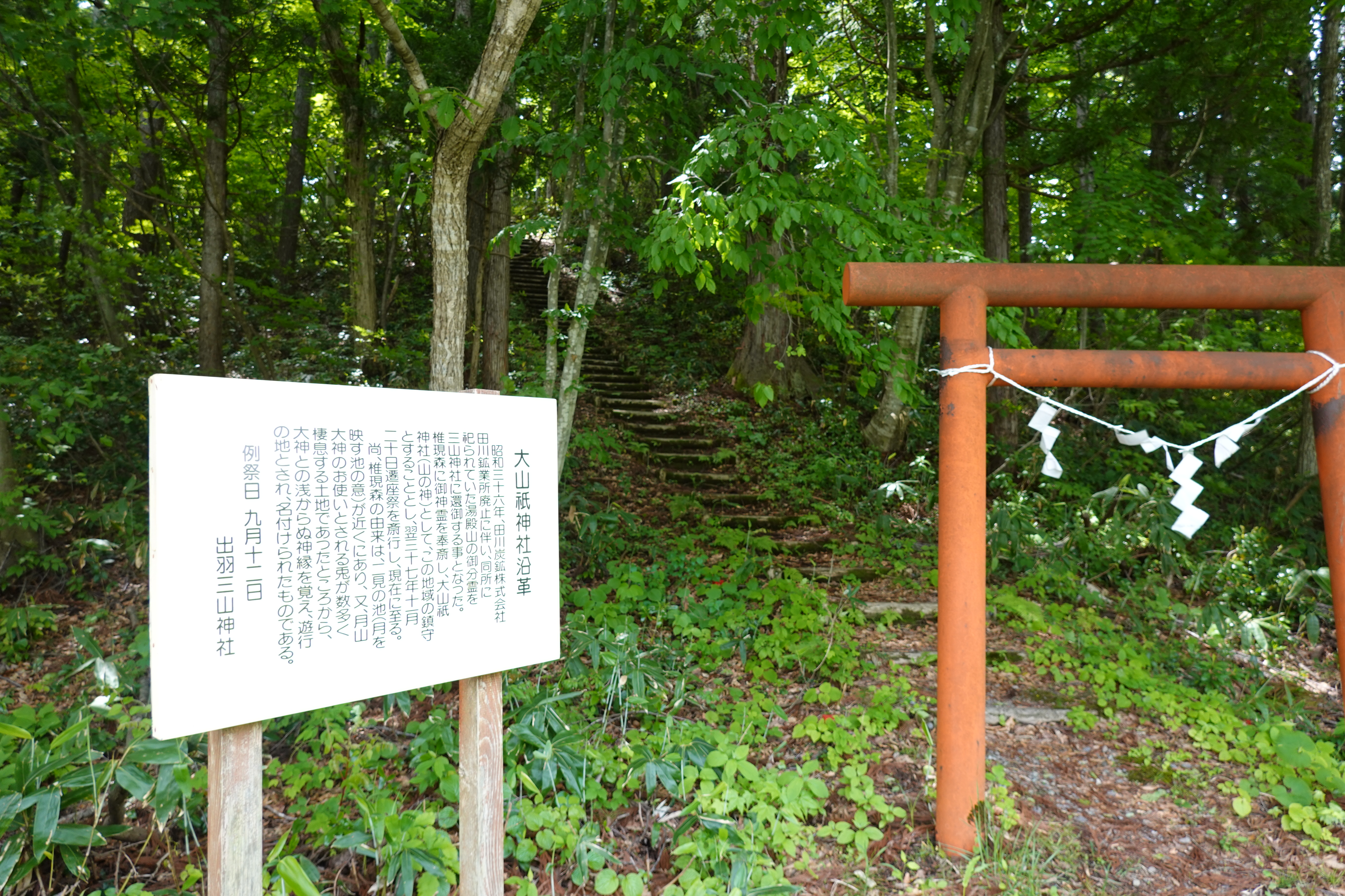 月山ビジターセンターから少し奥に行くと羽黒キャンプ場があります。その一角に小さな鳥居がありました。大山祇神社の鳥居です。鳥居をくぐると緩い坂が延びていて、しばらく歩くとひっそりとした神社が出てきます。前の日記でもご紹介していますので是非見てみてくださいね。
