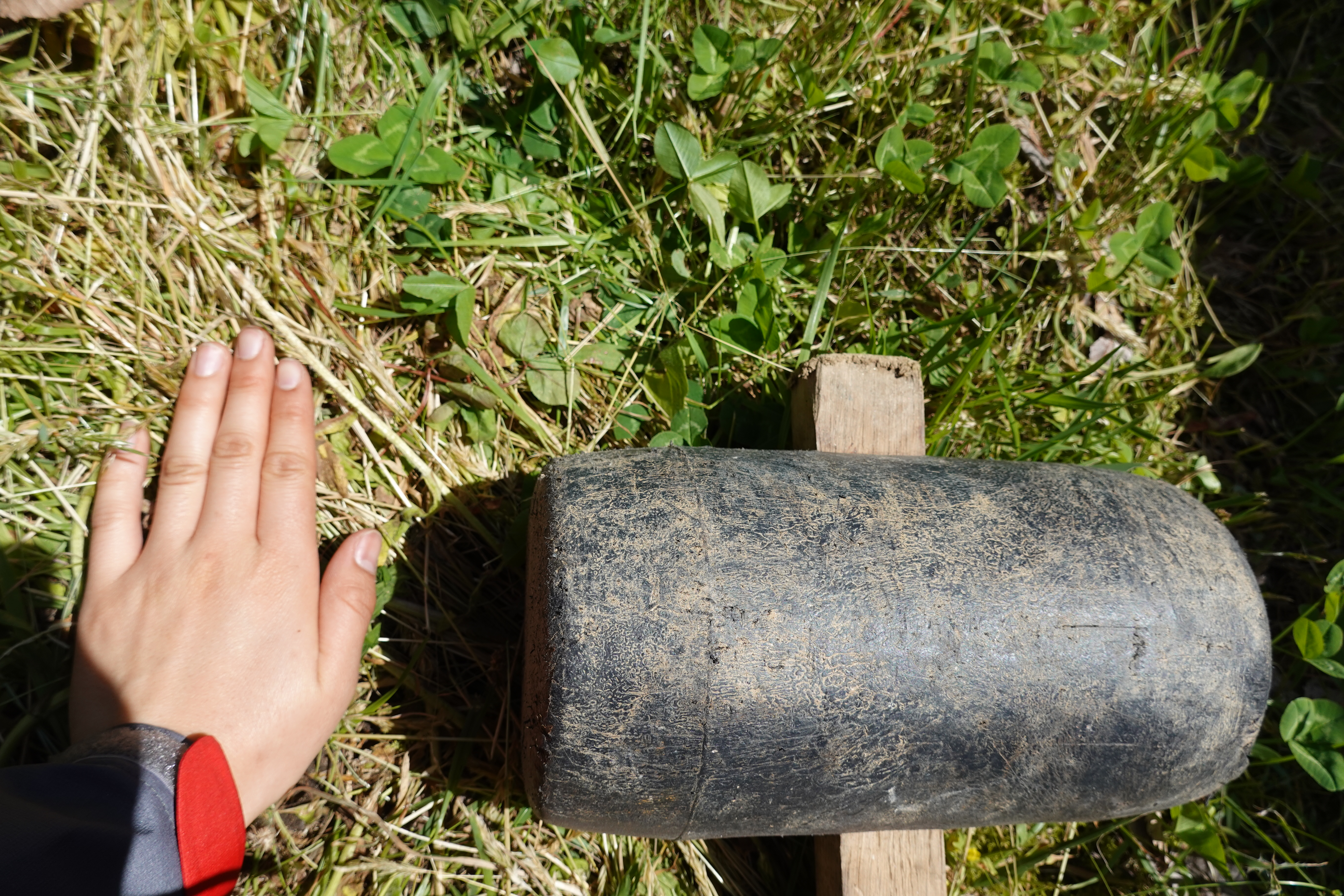 登山者カウンター(設置や点検の事については前の日記をご覧ください)を立てるときに使うハンマー。手と比べても、すごく大きいことがわかります。また、ずっしりと重いです。設置の時はこれを担いで山に登ります。大事な仕事の一つです。