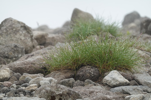 月山開山祭のことです。当日は天候が悪く、視界はほぼなしで強風でした。そんな中、ふと足下を見ると草にきれいな水滴が。癒やされました。