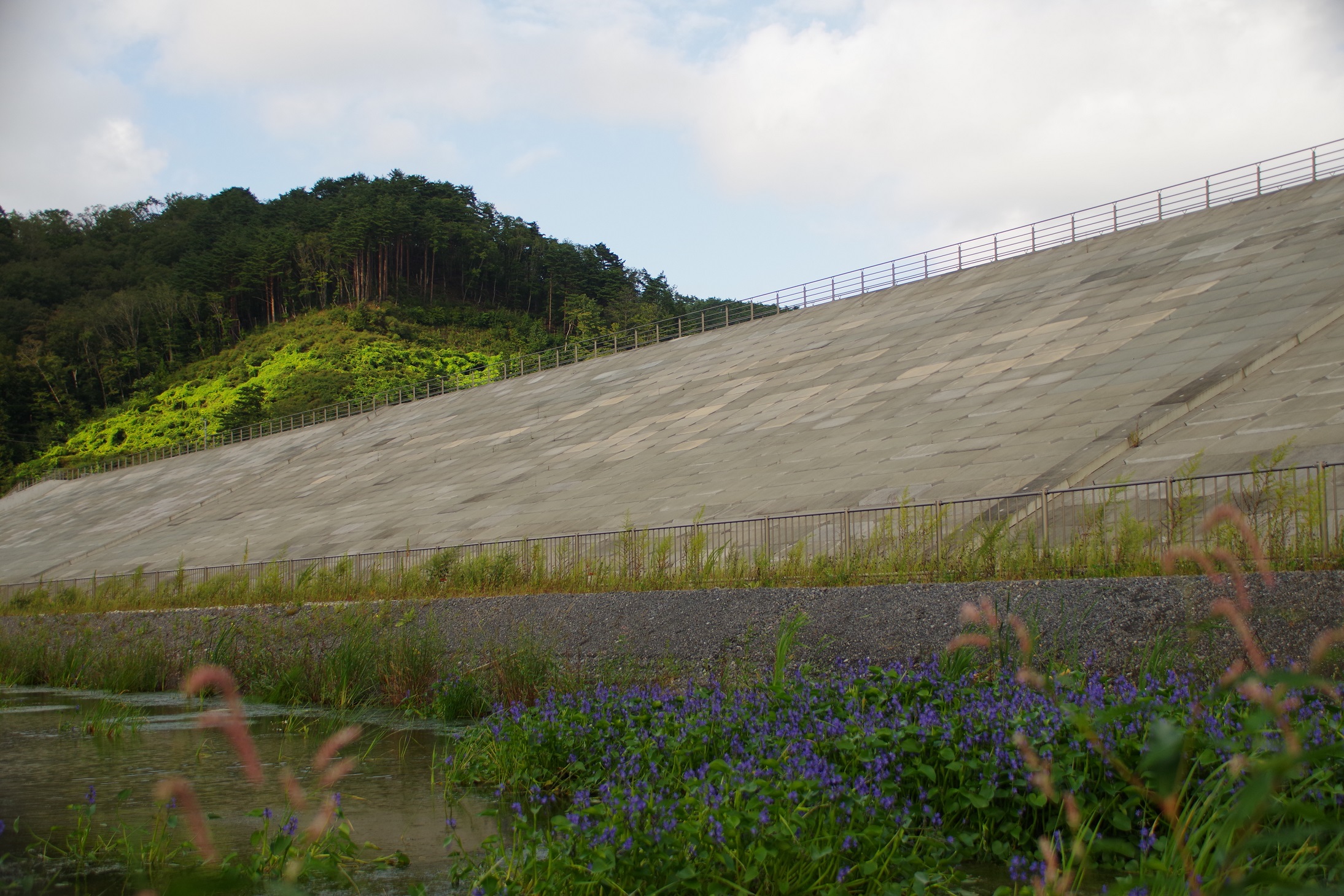 今回撮影したミズアオイ群生地は、岩手県釜石市片岸町の新しい防潮堤沿いにある遊水池です。片岸町では震災の前からミズアオイを守ろうと活動してきた方々がいるそうです。今はこの遊水池に部分的に生育している状態ですが、ミズアオイで一面が覆われる景色が今からとても楽しみです。