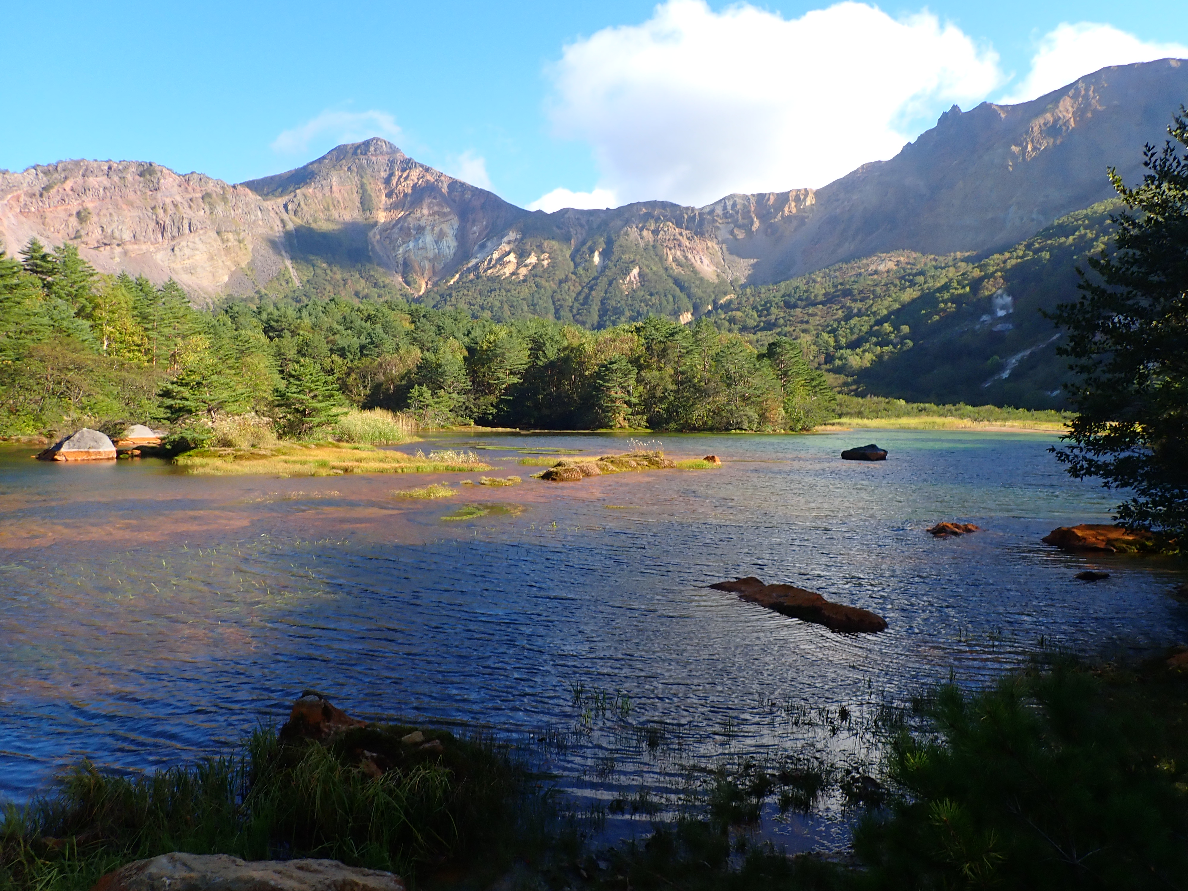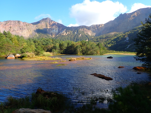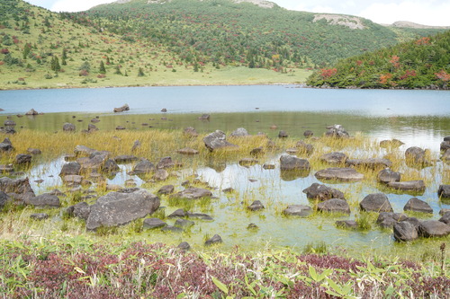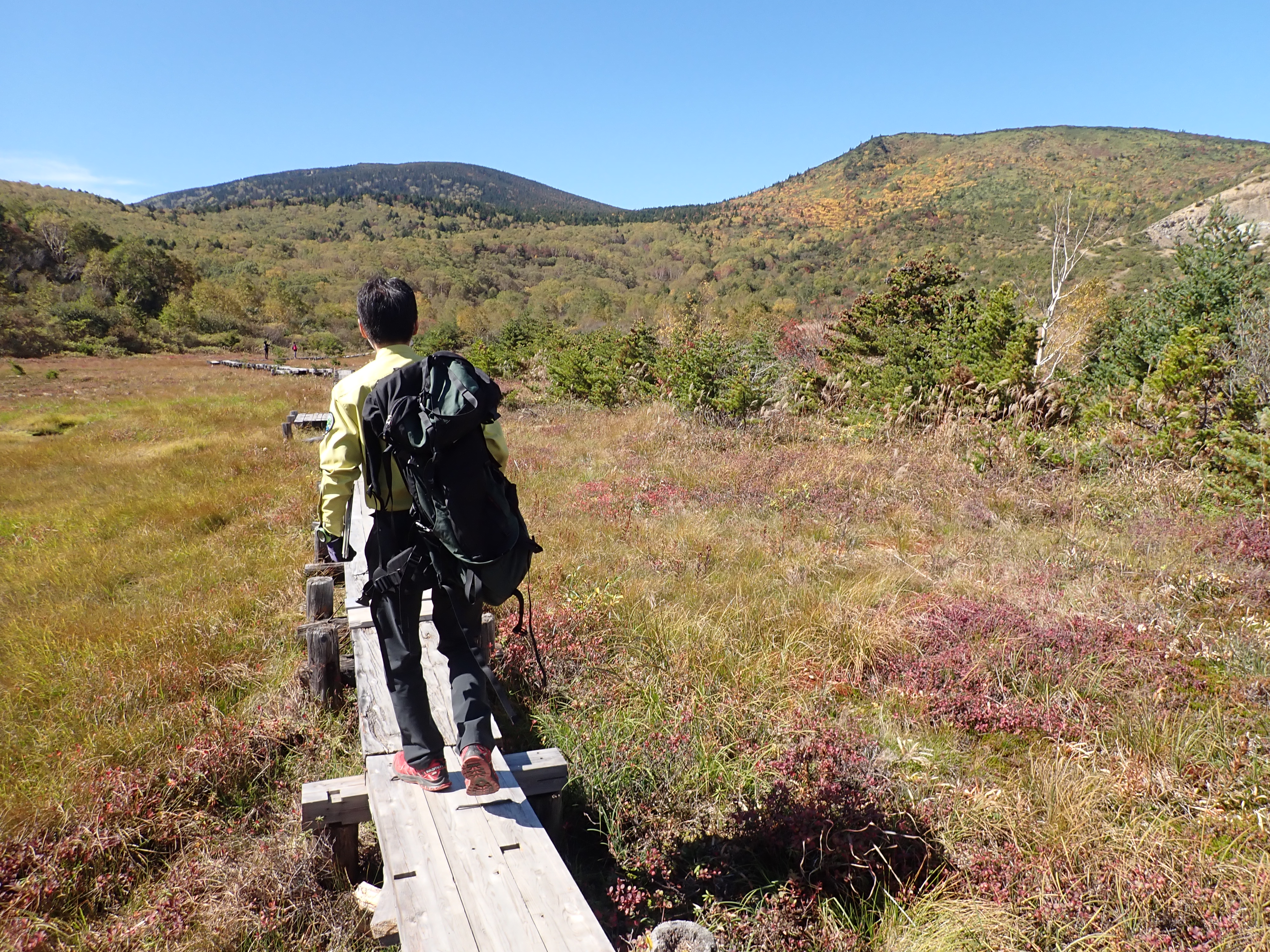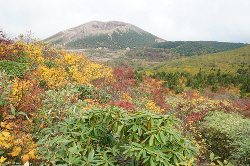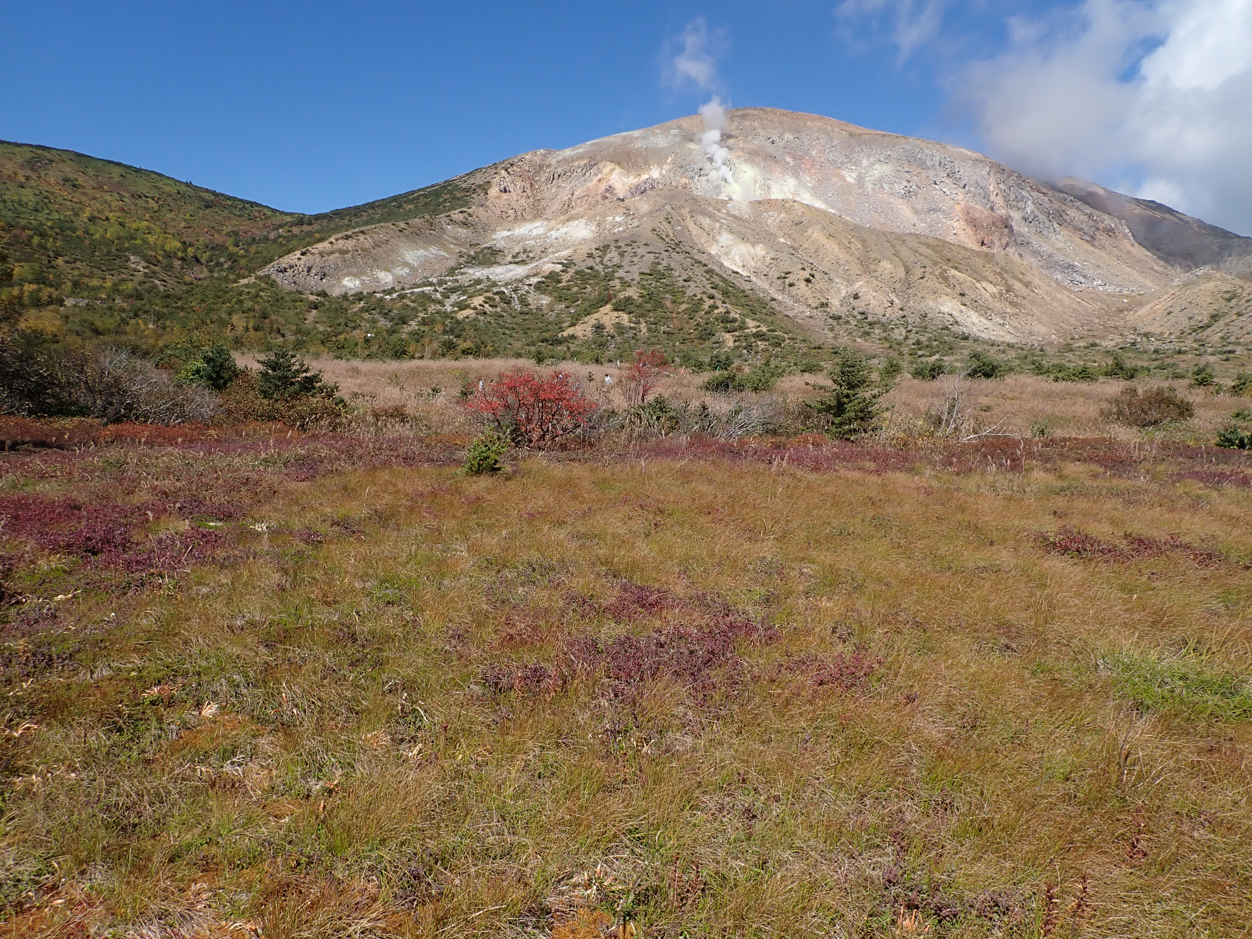 今年は夏以降、寒暖の差が大きく冷え込みが弱いせいか、あちこちの山でダケカンバやブナの葉が色づく前に枯れている姿が目立ちますが、浄土平付近のダケカンバ林はきれいな黄色の絨毯へ変わりつつあるようです。本格的な色づきはこれからですが、もう少しで訪れるピーク時が楽しみです。