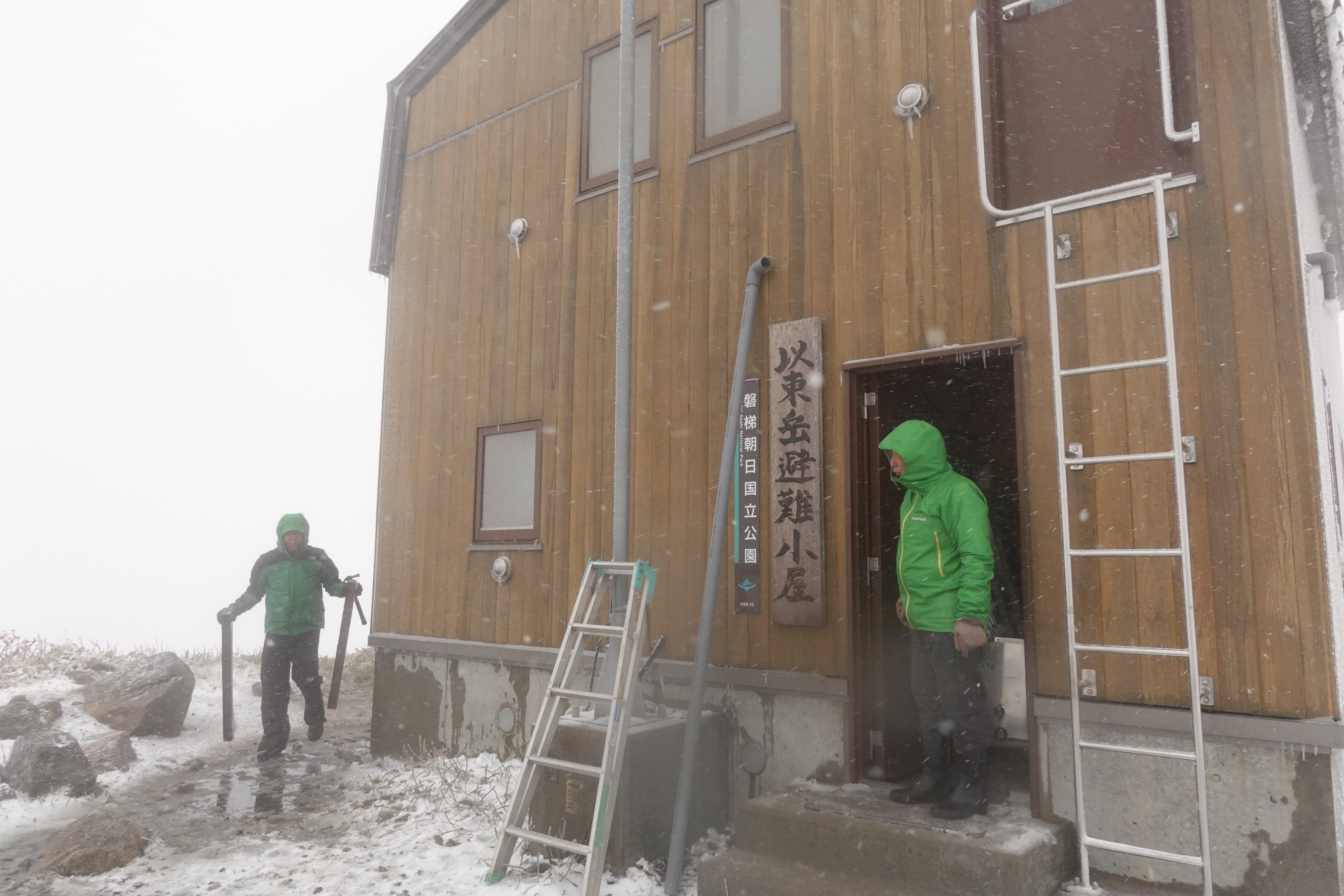 以東岳避難小屋の夏期管理体制に入るのはまた来年。いよいよ冬季管理になります。管理人はいませんが、小屋の鍵は開いています。