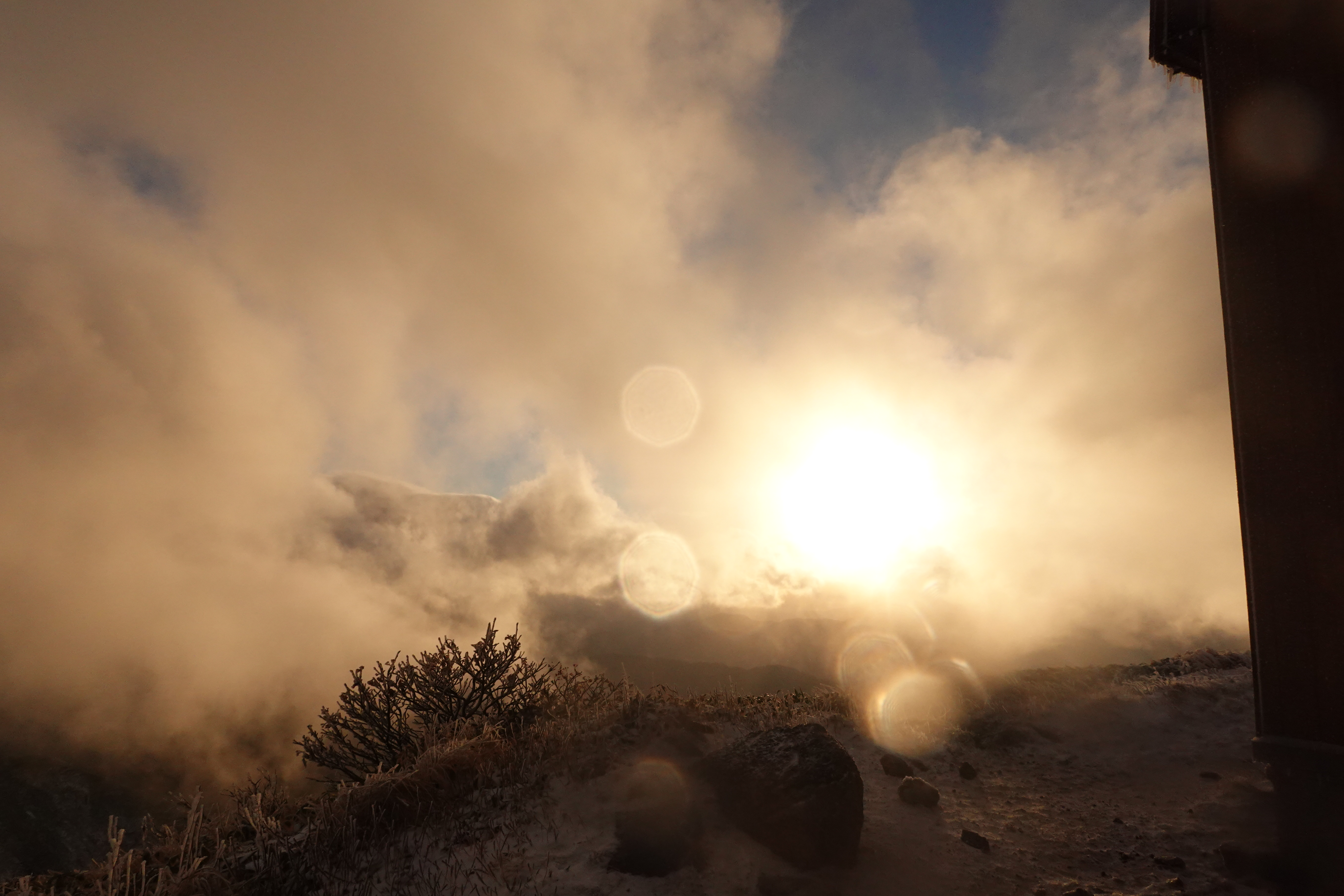 この日も一瞬晴れました。小屋閉め作業を頑張った人へのご褒美です。