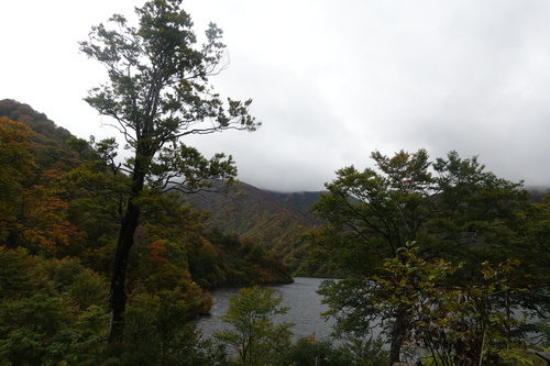 大鳥池につきました。周りの紅葉は、、、思ったよりもまだ標高が高いところが盛りですね。大鳥池の周りはあと1、2週間といったところでしょうか。