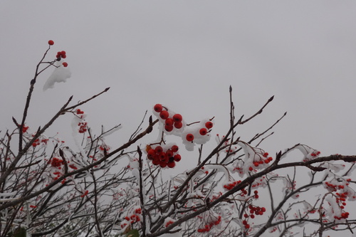 ナナカマドは、一日で雪をかぶってしまいました。かんざしのようでかわいい姿です。