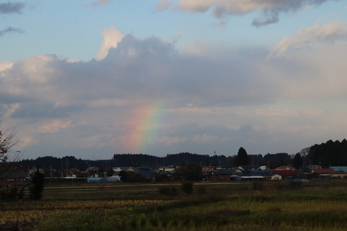 今回は、本来のコースを逆に歩きましたが、振り返ると八甲田がうっすら見え、おまけに虹も出ました。