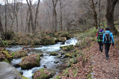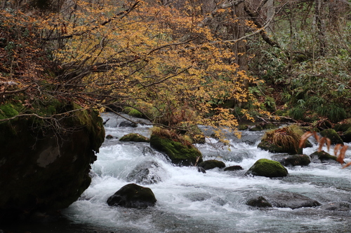 奥入瀬渓流がひときわ輝く季節は少し過ぎてしまいましたが、葉っぱが落ちてしまった渓流は、緑濃い時期に比べると見通しがよく、いつもは見えない滝や柱状節理の様子を観察することができます。