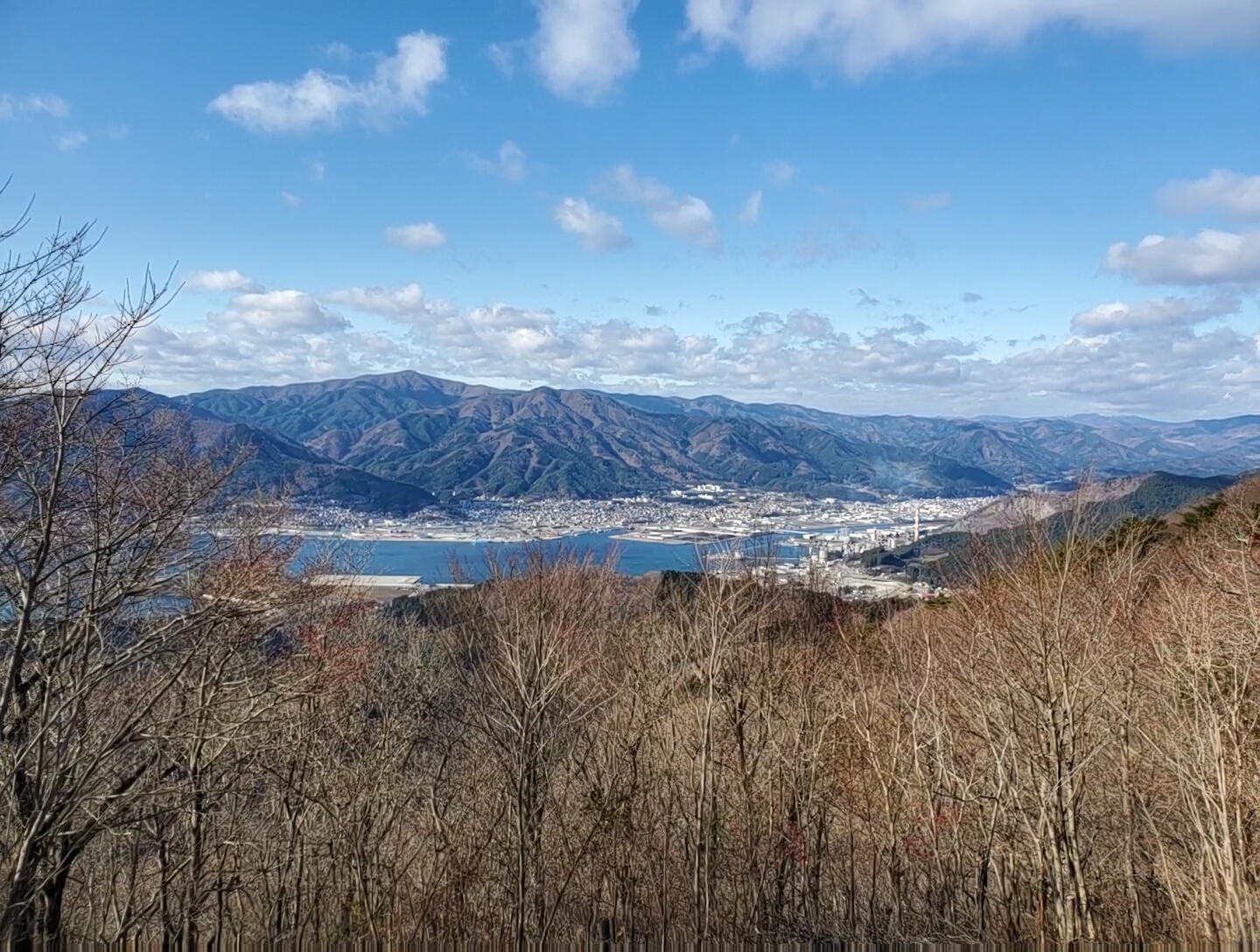 〈絶景ポイント、大船渡湾を一目に見下ろせます。サクサク霜が下りていました。〉