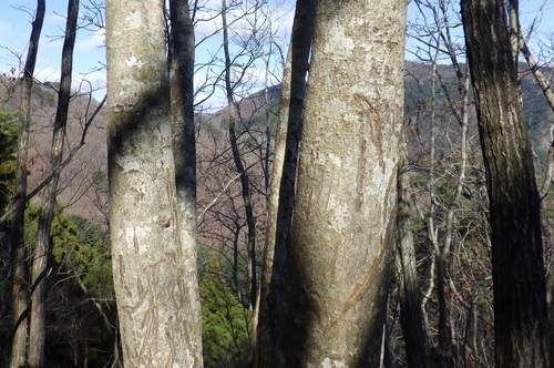〈引っ掻き跡。交差しているのでクマの爪跡ではなく「シカの角研ぎ」を導き出しました。〉