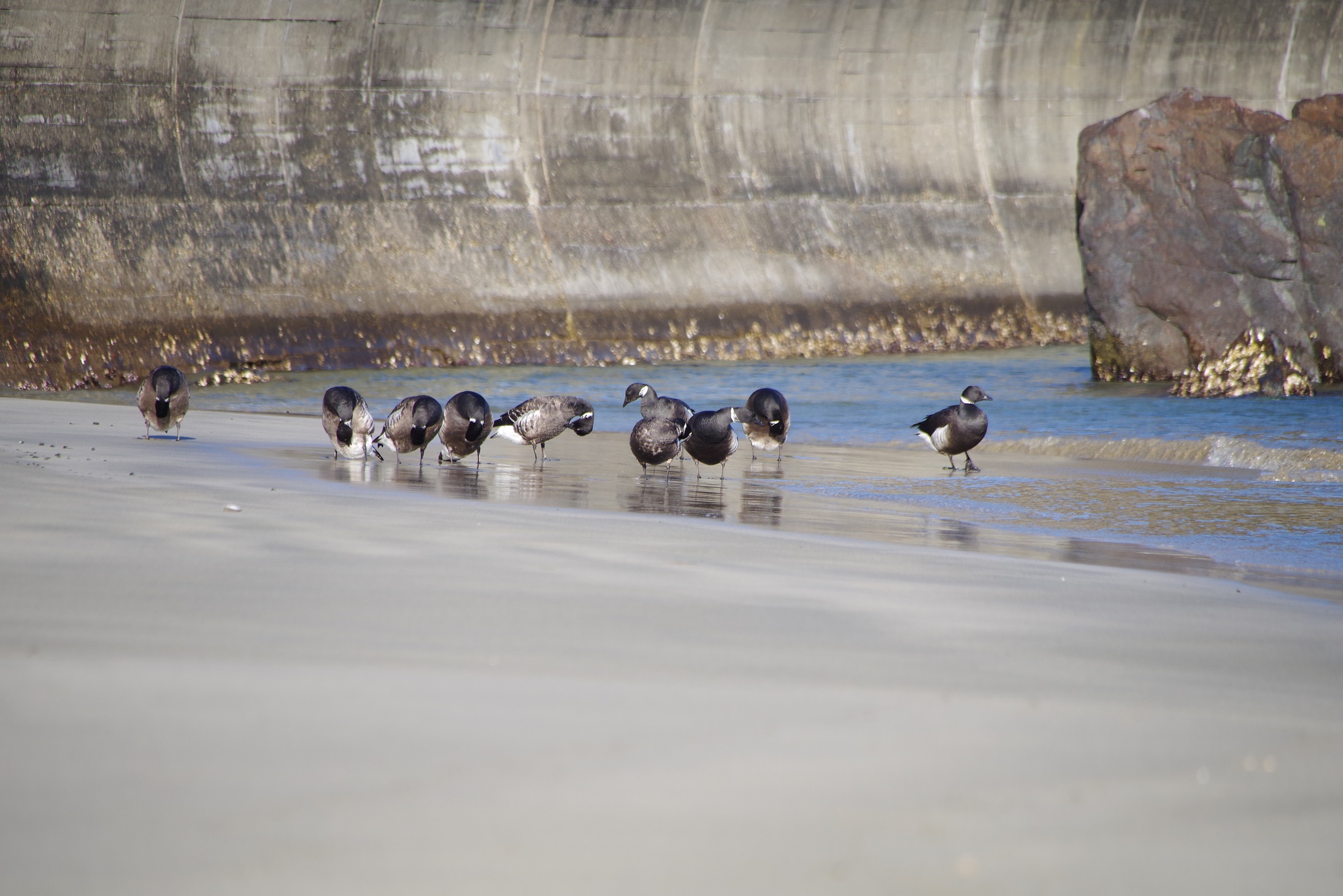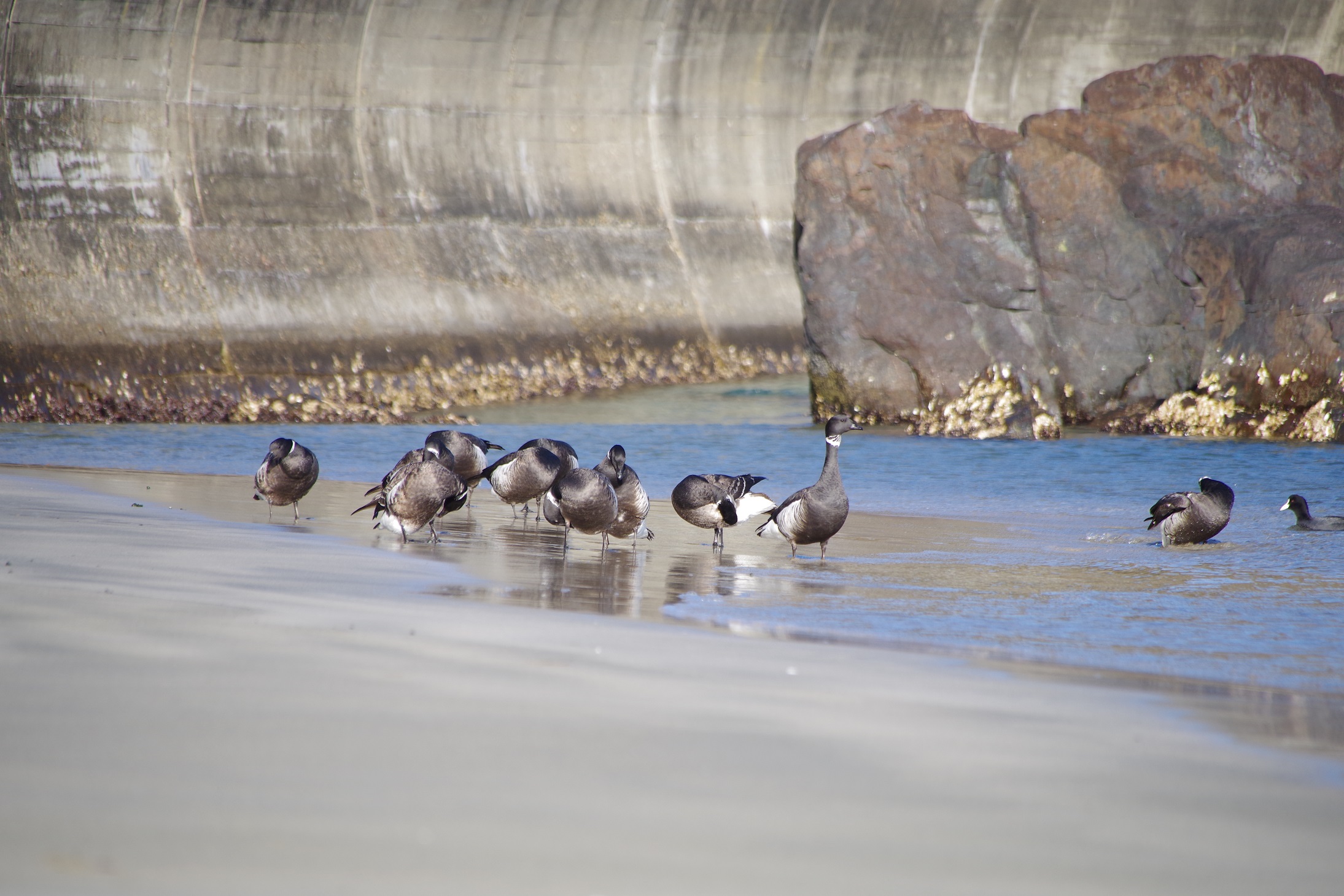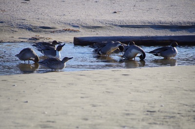 砂浜には別の団体様もいらっしゃいました。カモ類のようです。