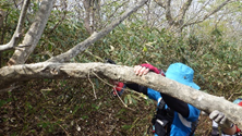 安心して登山してもらう為に、ロープ張りや張り出した枝を整理したりします。