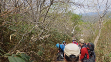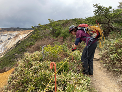 登山道にロープを設置します。