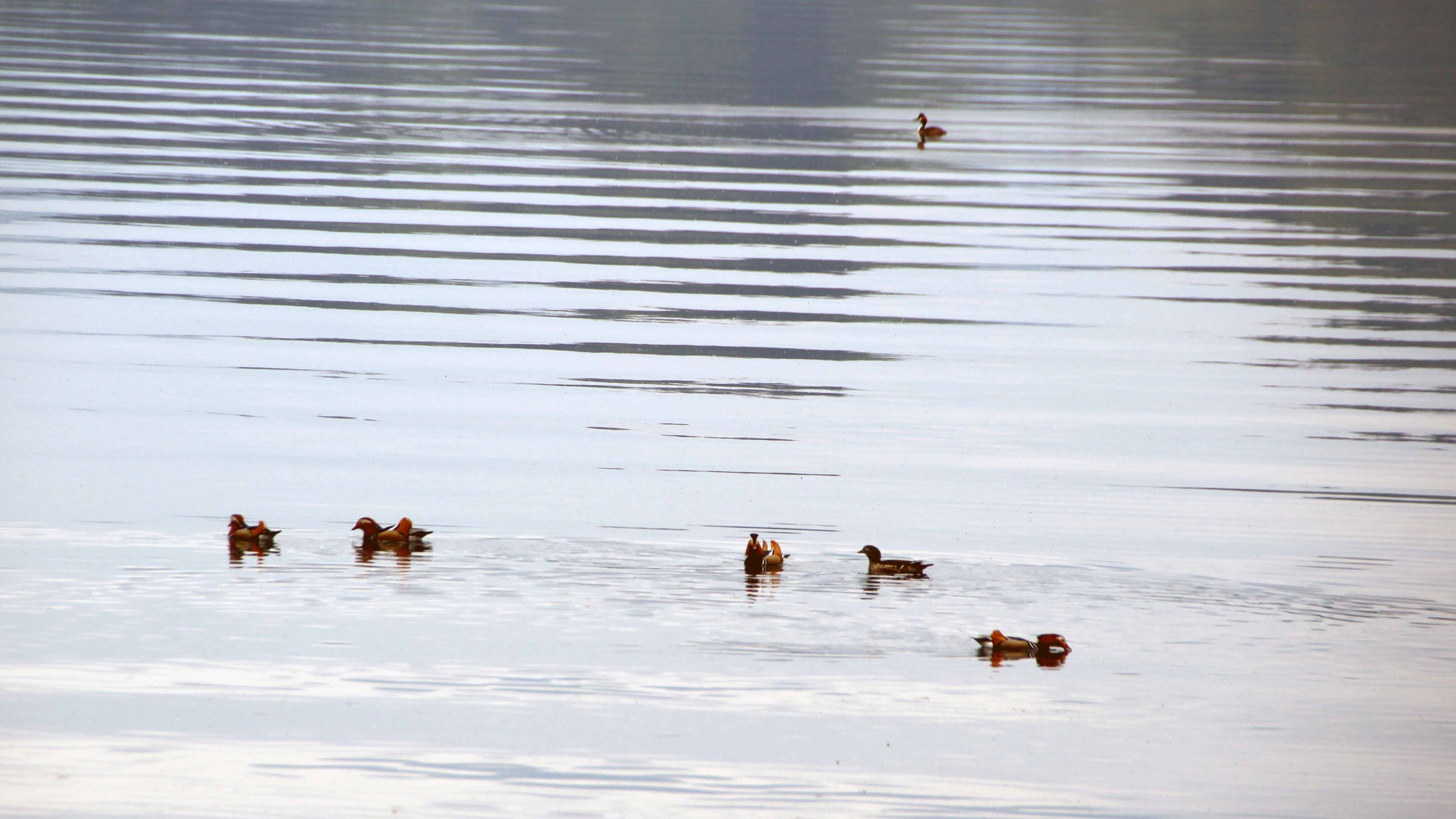 オシドリは毎年ペアを変え、メスの1.5倍の数がいるオスは派手な羽で自己アピールして繁殖活動をします。