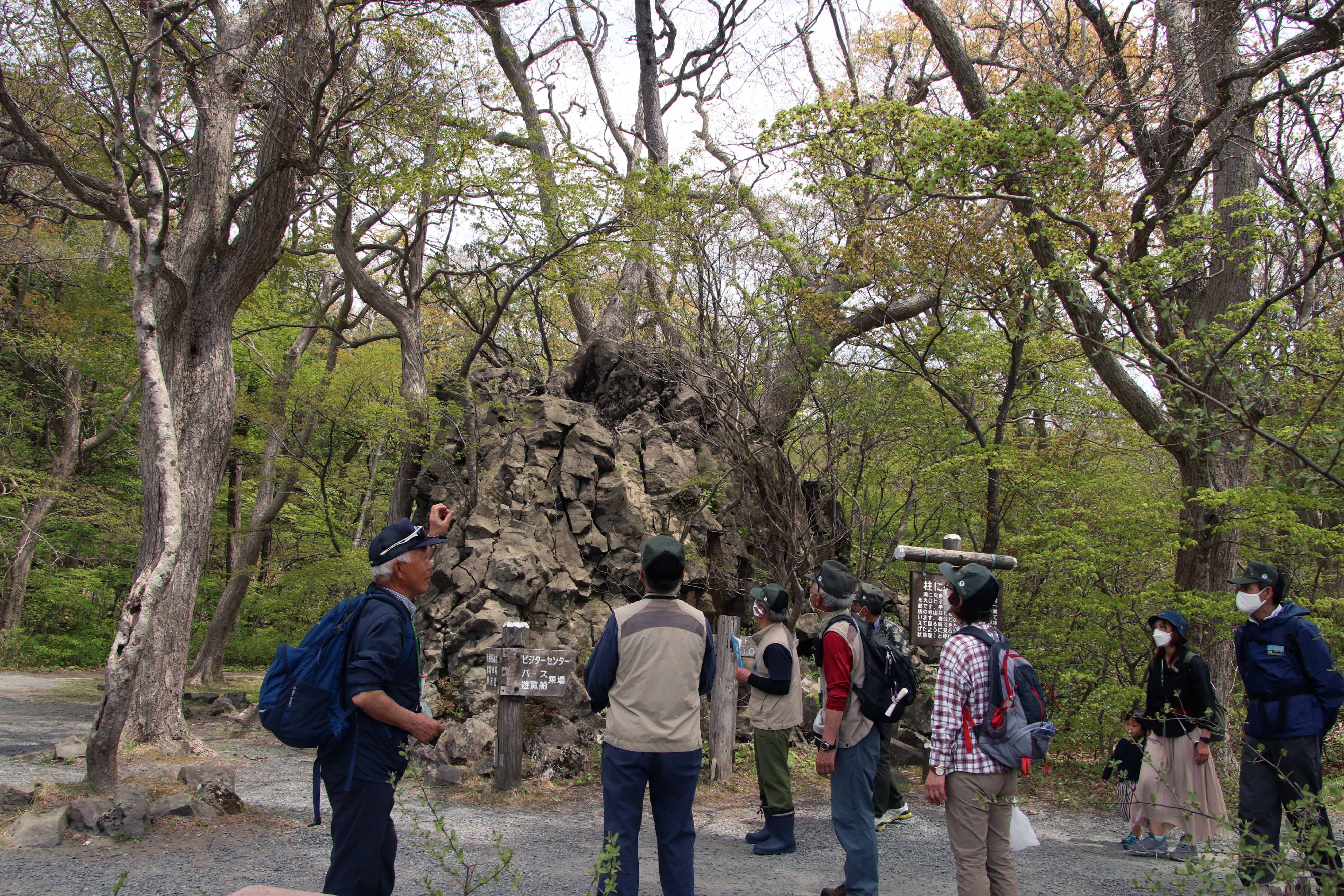 先日、環境大臣表彰を受賞した、自然公園財団十和田支部の山下さんを講師に迎え、十和田湖畔休屋地区を2時間ほどかけて案内していただきました。
