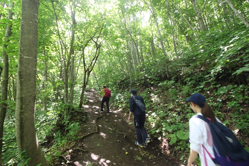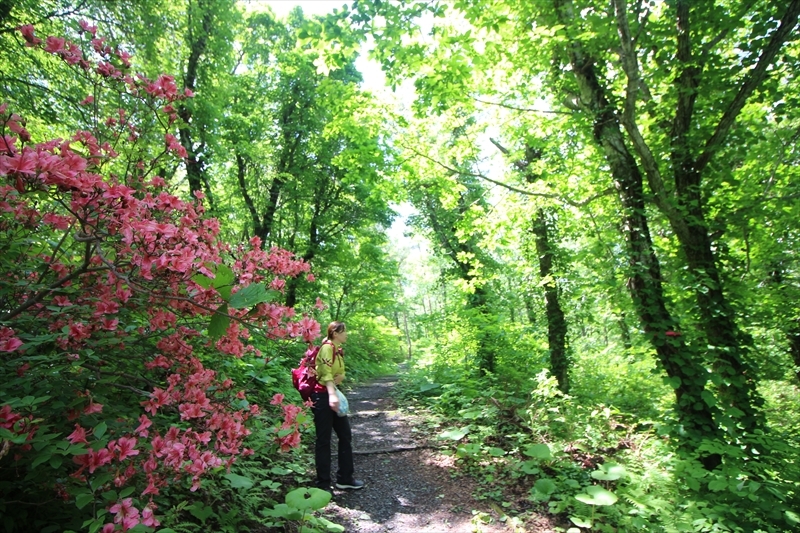 新緑が綺麗な階上岳。山頂付近になるとヤマツツジが少し残っていました。