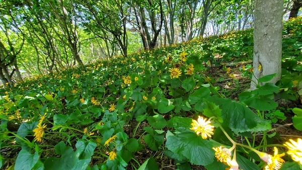 《一面に黄色輝くマルバダケブキ*画面に収まりきりません!》