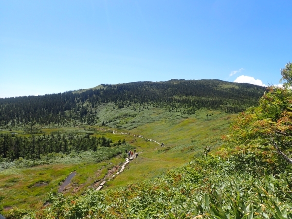 中大顚分岐を吾妻山小屋方向へ進むと、湿原が見えます。