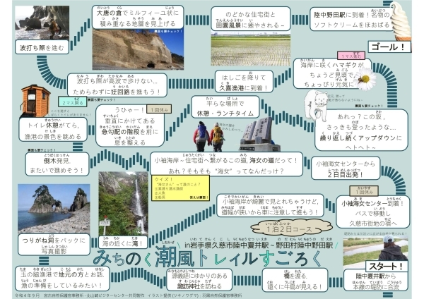 おうちで楽しくみちのく潮風トレイルを知って遊んでみてください。