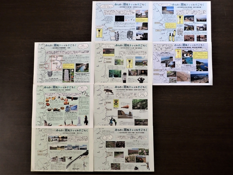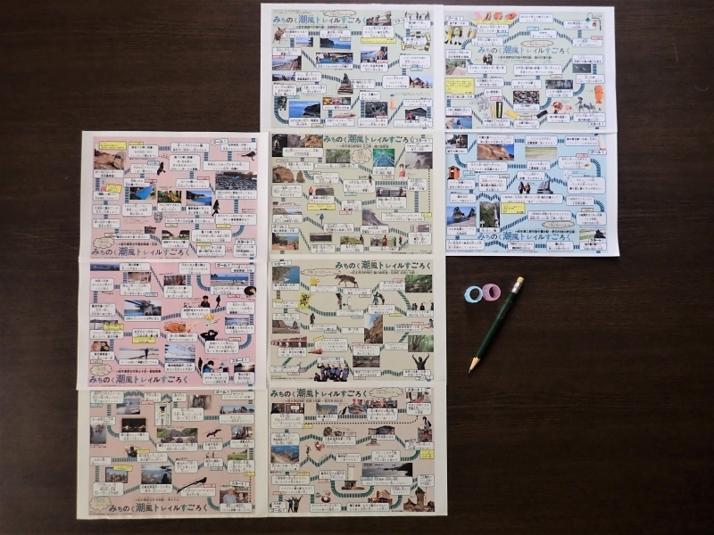 みちのく潮風トレイルを歩きたいけど遠方でなかなか足を運べない方をはじめ、たくさんの方にみちのく潮風トレイルを知っていただきたいと作製している「みちのく潮風トレイルすごろく」。このたび、久慈市陸中夏井駅から野田村陸中野田駅の間と、宮古市音部漁港から石浜地区の間の2枚が完成しました。