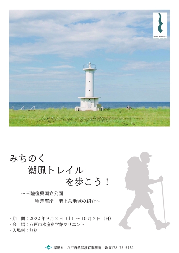 「みちのく潮風トレイルを歩こう!~三陸復興国立公園種差海岸・階上岳地域の紹介~」の展示を八戸市水産科学館マリエントの5階で開催しています!