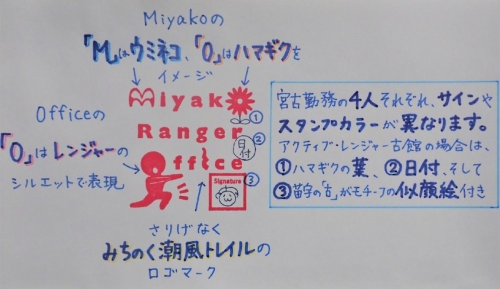 出会う職員によってサインや色が異なるので、ぜひ宮古自然保護官事務所の職員4人のスタンプをコンプリートしてみては?