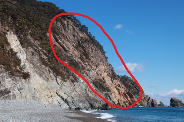 さて、先日、山田町の漉磯(すくいそ)海岸を訪れました。ここは、霞露ヶ岳の山頂へと続く登山道/みちのく潮風トレイルのルートがあり、以前から登山口が分かりづらいとのお声が聞かれる場所でしたが、このたび山田町と観光協会のみなさんの手作りで標識設置が完了したとの情報があり、現場を確認してきました。