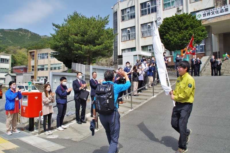ゴール地点の釜石駅には環境省の職員だけでなく地元事業者の皆さんもかけつけ、その瞬間を共有しました。