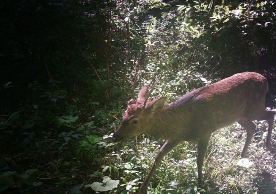 シカは、白神山地周辺地域では明治から昭和初期に絶滅したとされていたのですが、近年目撃情報が相次いでおり、世界遺産地域においても目撃されています。