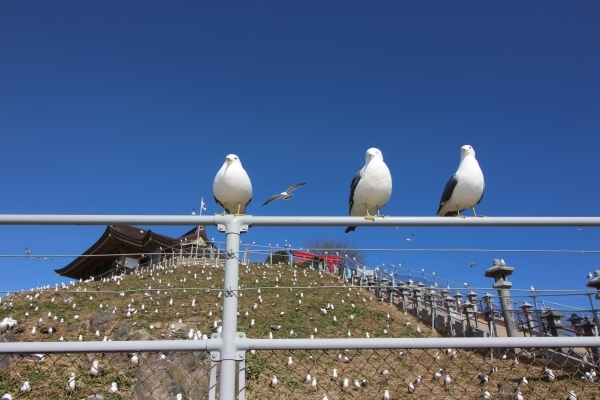年末から例年にない暖かさが続き、蕪島のウミネコさんたちも早々に賑やかです。