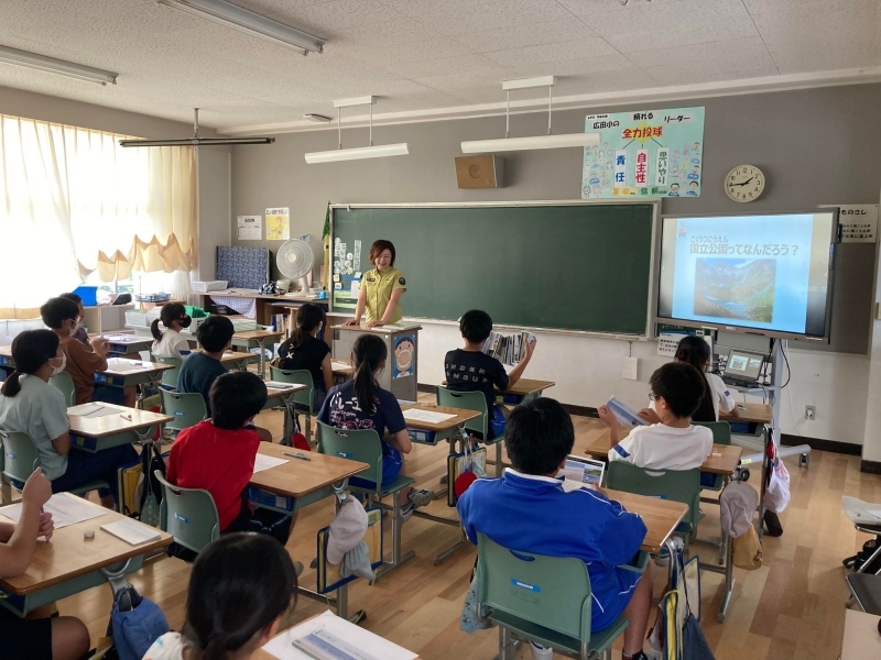 大船渡管理官事務所からは、自分たちの住む地域の自然や暮らしを見つめるために「広田の自然」「日本の国立公園」「みちのく潮風トレイル」についてお話ししました。