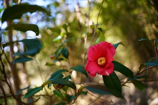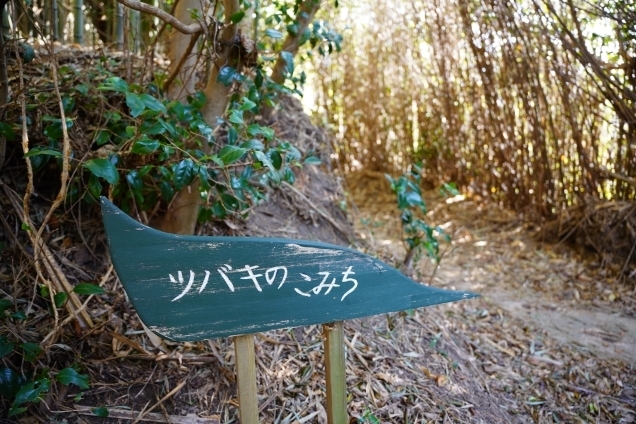 ツバキのトンネル(こみち)は心が躍ります。何輪か咲いていました。