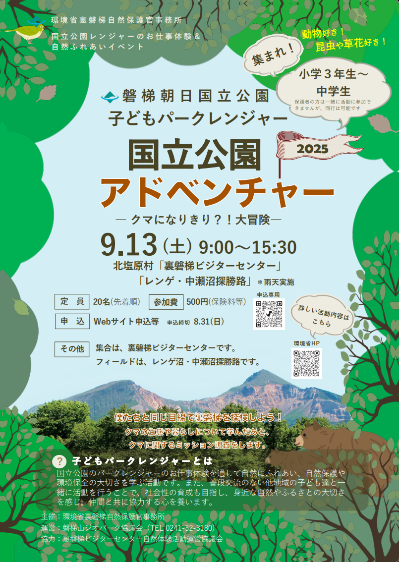東北地方環境事務所のアクティブ・レンジャーが、活動の様子をお伝えします。アクティブ・レンジャーとは、自然保護官の補佐役として、国立公園等のパトロール、調査、利用者指導、自然解説などの業務を担う環境省の職員です。管内には、十和田八幡平、三陸復興、磐梯朝日国立公園があります。