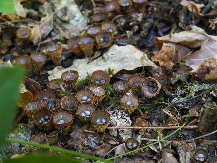 一つ一つがとても小さく、小枝や枯葉に紛れていることがあるので、地面をよく見ていないと見逃してしまいます。時には群生して圧倒的な存在感を放っていることもあるかもしれません。