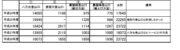 報道発表:平成28年度磐梯朝日国立公園磐梯吾妻地区における入山者数調査について(お知らせ)