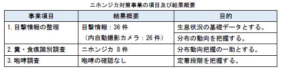 また、糞・食痕識別調査においては65件のサンプルについて分析を行い、そのうち8件がニホンジカと判定されました。