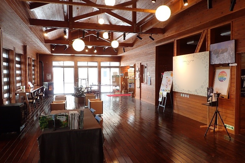 部屋を細かく仕切っていた壁を取り払い、旅の情報交換や隣接する温泉を利用した来館者がゆっくり休憩いただける開放的な空間になりました。