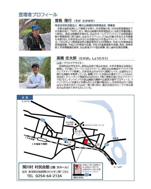 行政機関、山岳団体、観光事業者など(一般の方も参加可能です)